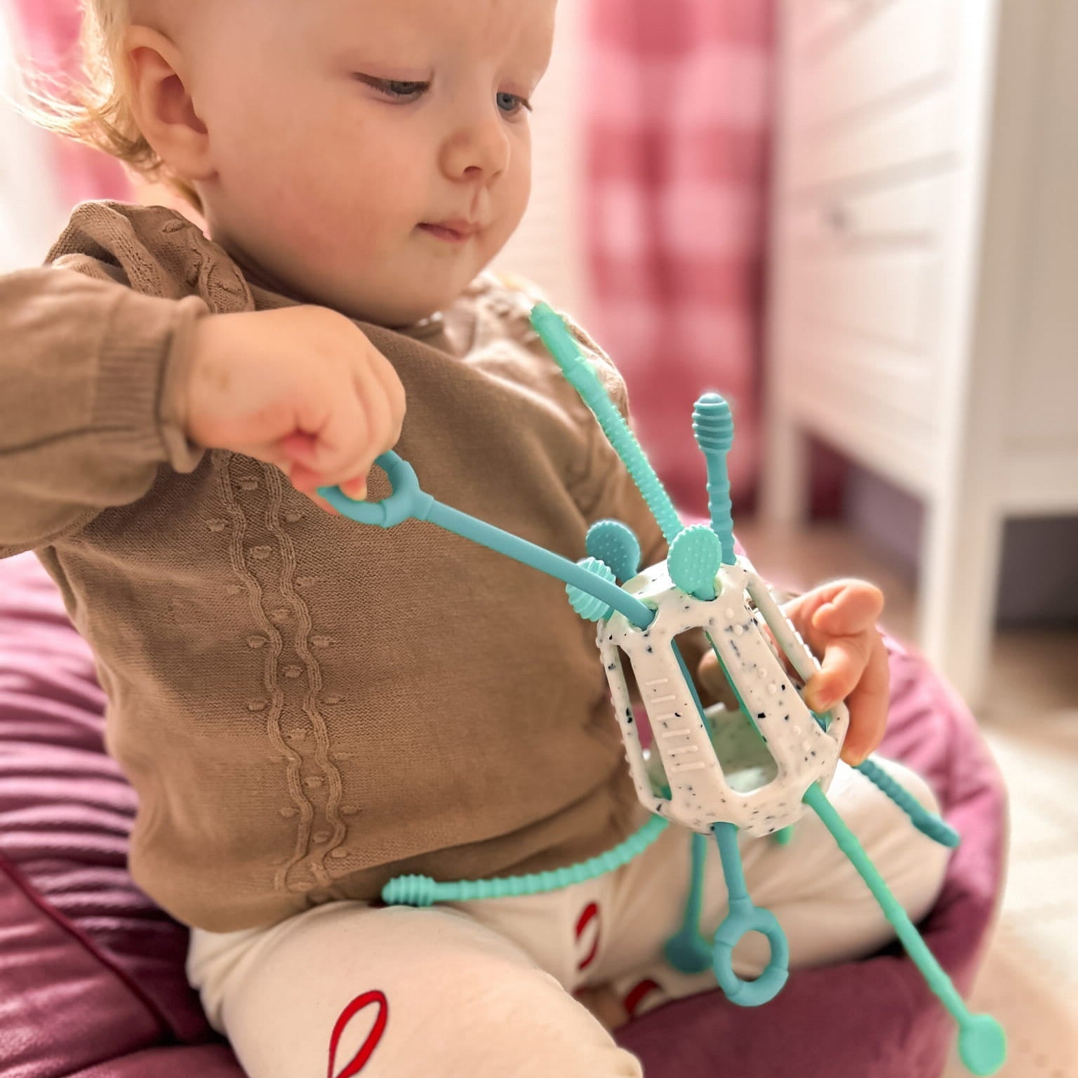 Det sensoriske træklegetøj fra Mobi er et unikt sensorisk legetøj, der er specielt designet til småbørn, der elsker at udforske forskellige teksturer og former.