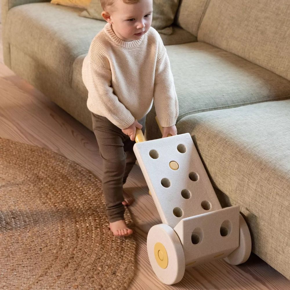 Du kan bygge en gåvogn til dit lille barn, mens dit ældre barn kører rundt på et køretøj med hjul.