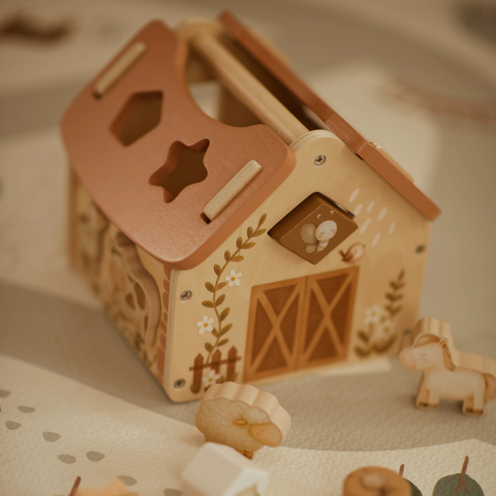 Barnet skal sætte brikkerne i de rigtige huller i huset, hvilket på en smart måde fremmer hånd-øje-koordination, visuel perception og logisk tænkning.