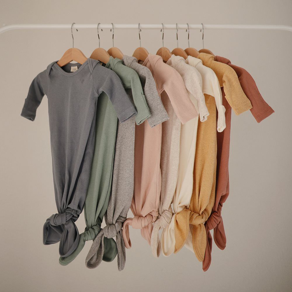 En eksklusiv babypyjamas fra Mushie i farven Blush, der vokser med dit barn.