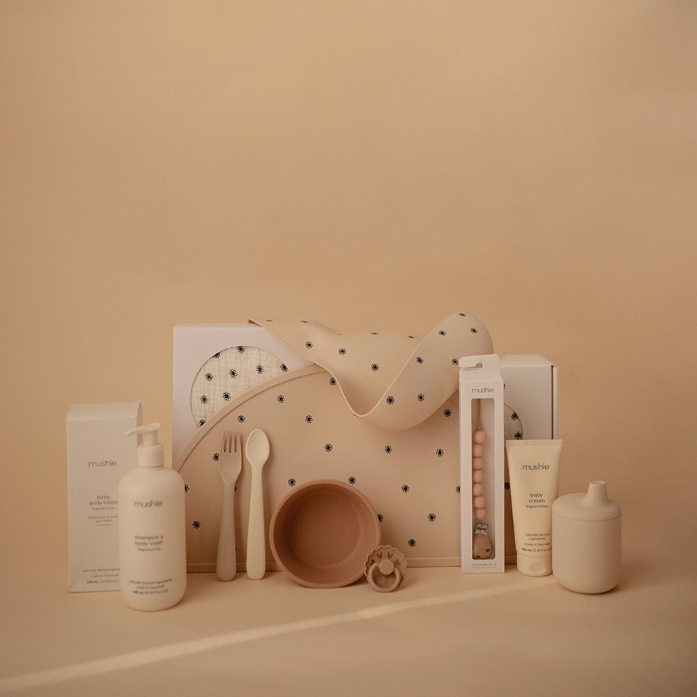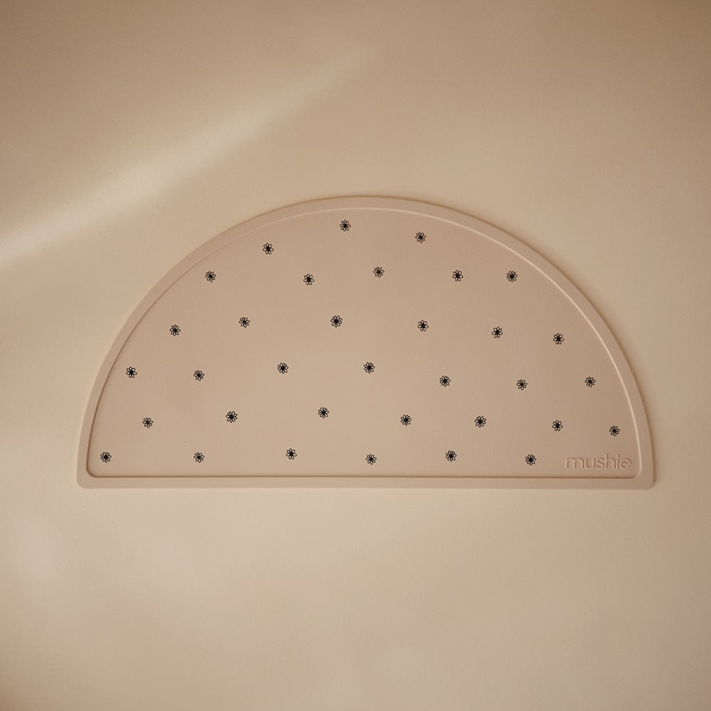 Bordmåtten fås i smukke naturinspirerede farver, så den er nem at matche med Mushie-hagesmækken eller andet service.