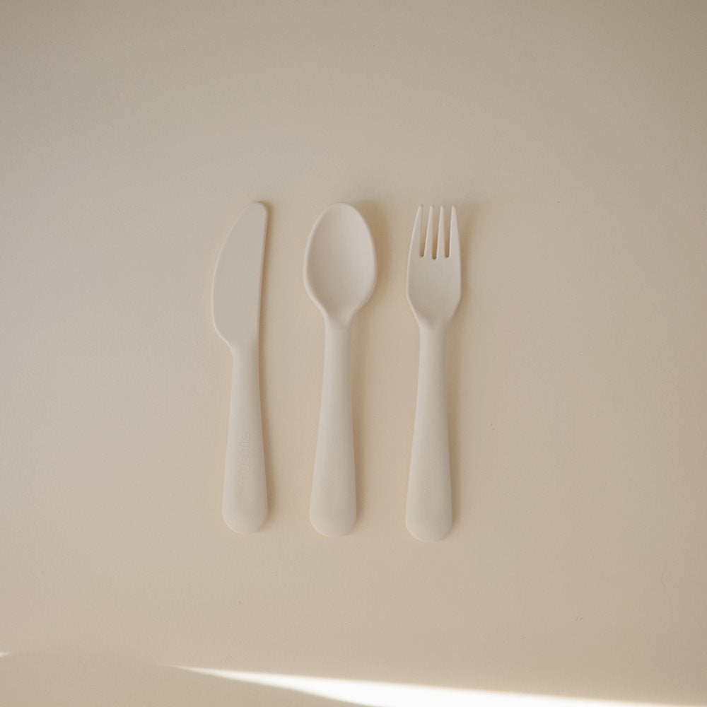 Børnebestik 3 dele i elfenben fra mærket Mushie.