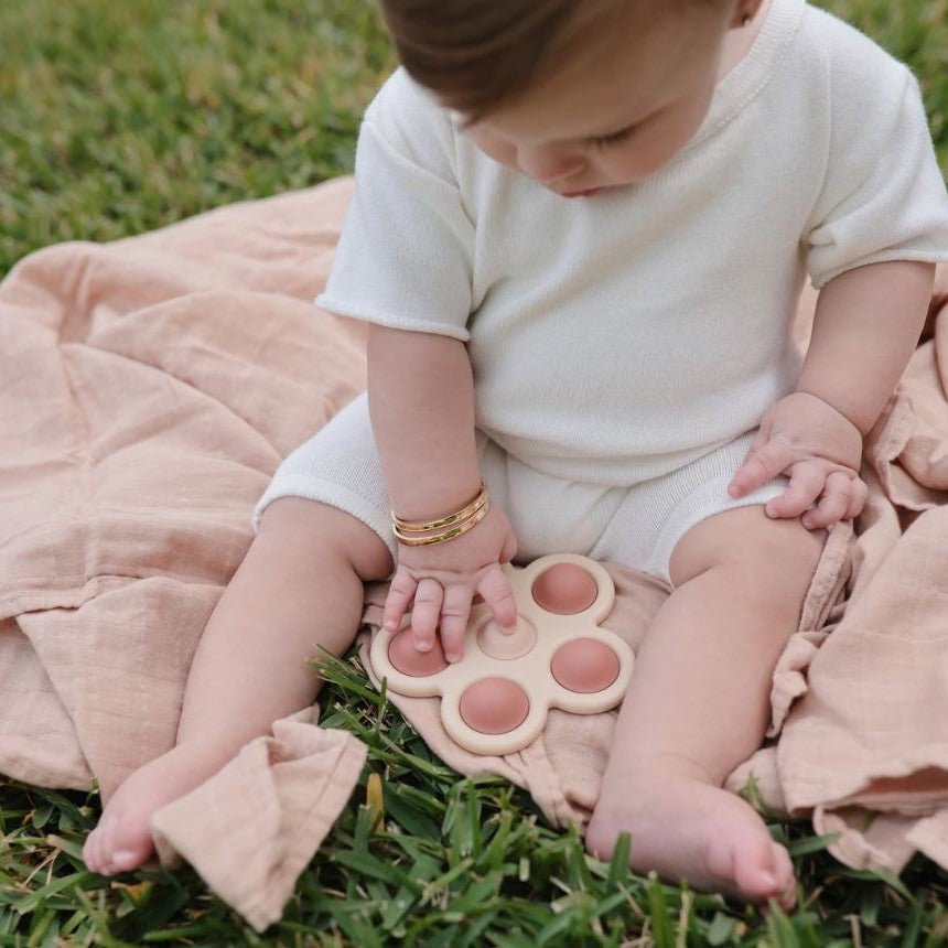 De farverige knapper er lavet af silikone i fødevarekvalitet og tilskynder til at trykke for at udvikle sensoriske og motoriske færdigheder. Takket være sin 'push and pop'-funktion er det svært at modstå fristelsen til at trykke på knapperne på dette sensoriske legetøj, som giver timevis af sjov for babyen og endda også for de voksne.