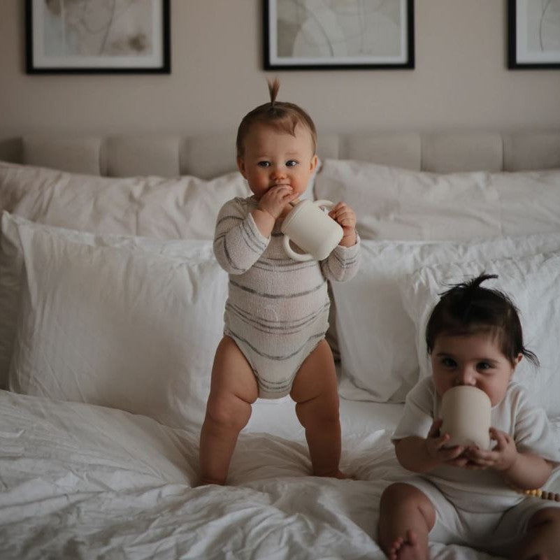 Mushie Straw Mug er designet til at passe perfekt i små hænder og hjælpe babyens taleudvikling.