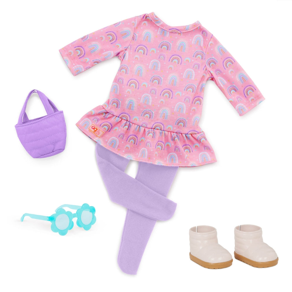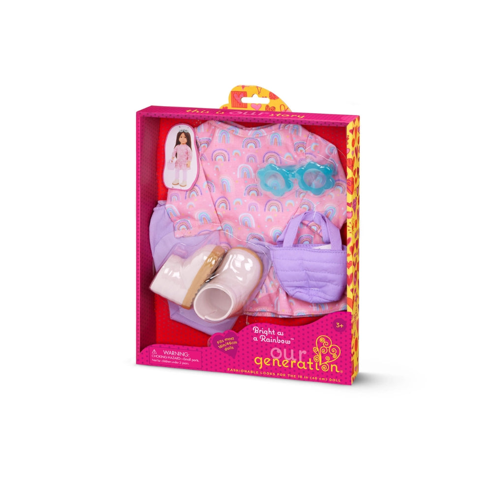 Unikt tøj til dukker fra Our Generation i regnbuens farver.