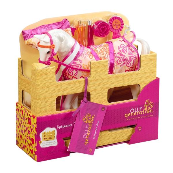 Den smukke Lipizzaner-dukkeføl i hvidt fra Our Generation-mærket er et unikt legetøj til enhver hesteelsker, der garanteret vil give fantastisk sjov kombineret med nyttig læring og udvikling.