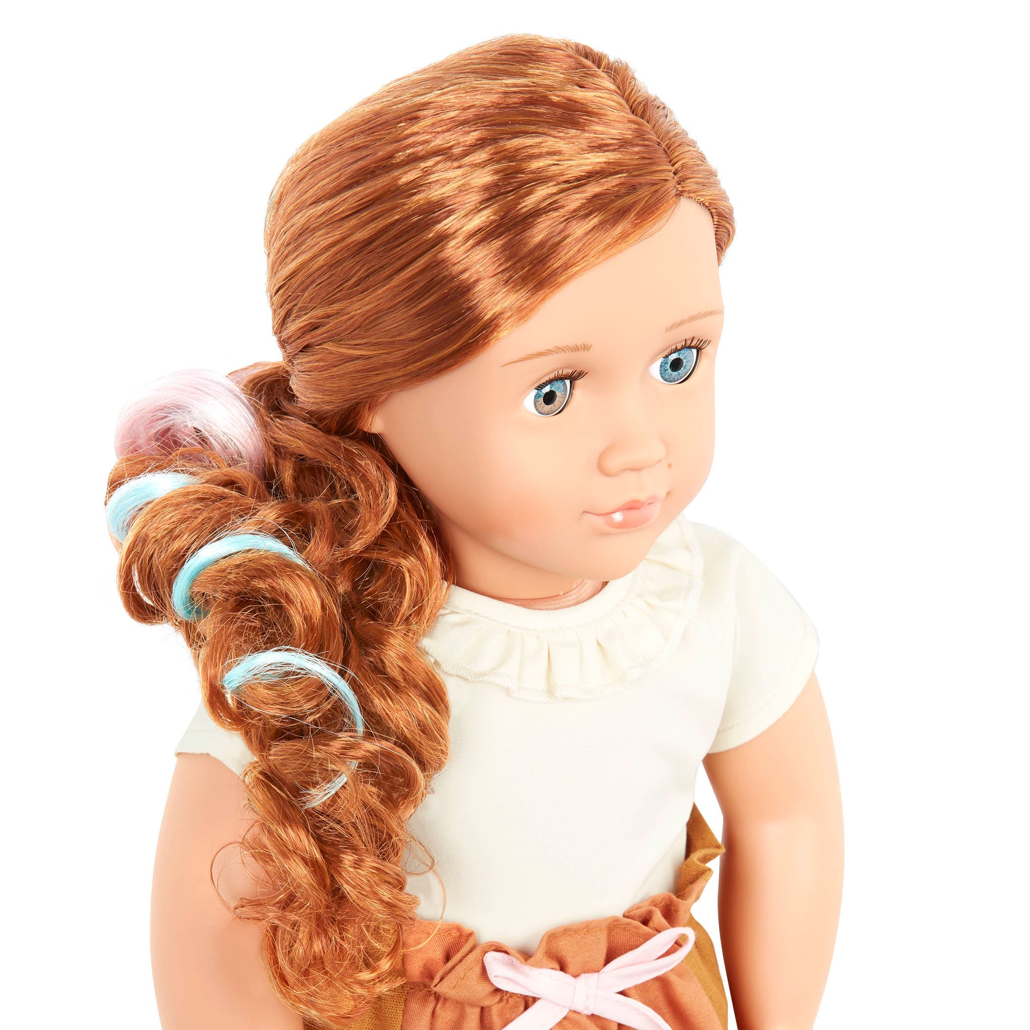 Our Generation-babydukken har bevægelige arme, ben, hoved og øjenlåg, en blød overkrop og smukt hår.