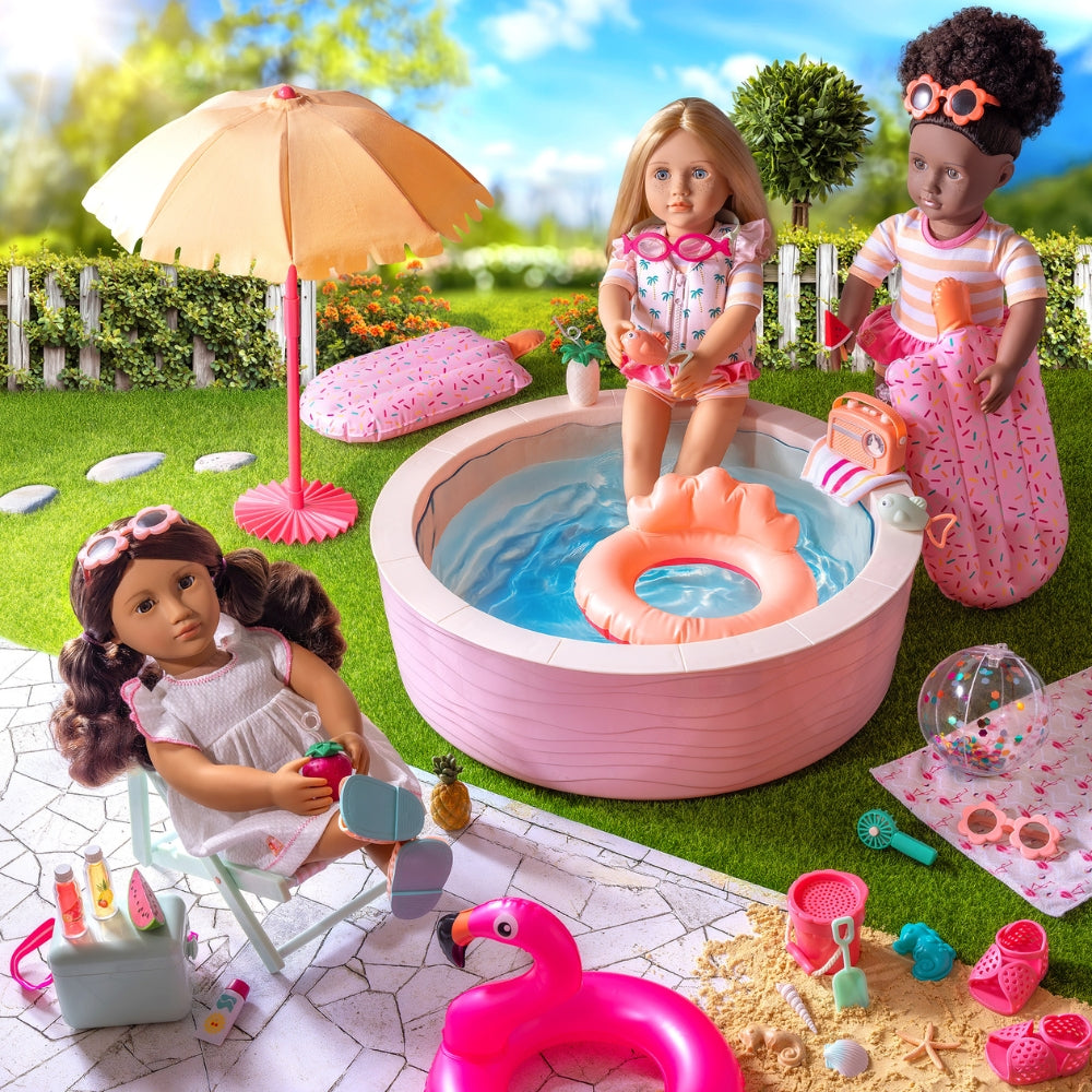 Our Generation Doll Pool er perfekt til børn, der elsker at skabe sommerhistorier fulde af sol og sjov.
