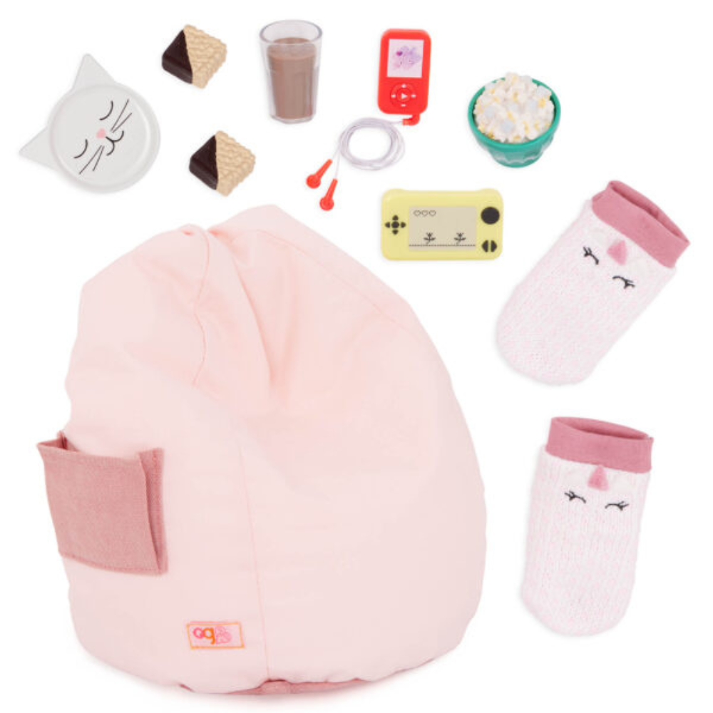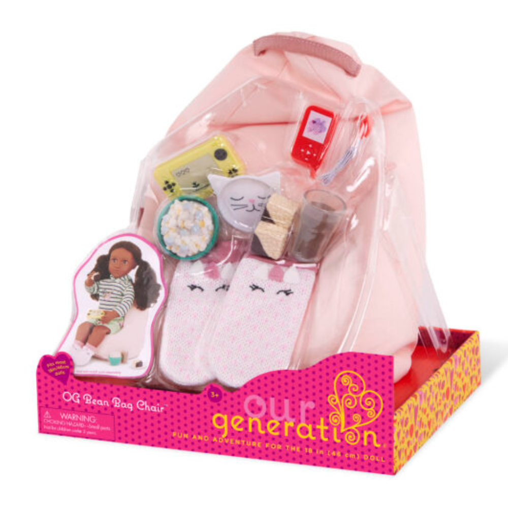 Siddesækkens fungerer godt til stille læsning, musiklytning eller afslapning efter intens leg – ligesom i en 'voksen' stue. Passer til Our Generation-dukker med en højde på 46 cm.