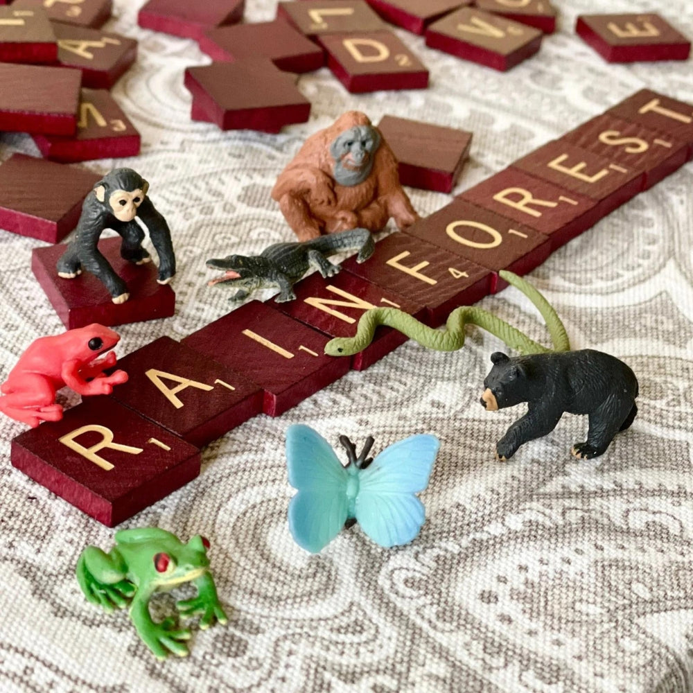 Dette yndige sæt med 8 regnskovsdyr er perfekt til undervisningsformål og er også en fantastisk tilføjelse til Montessori-legetøj til udforskning af økosystemer og biomer.