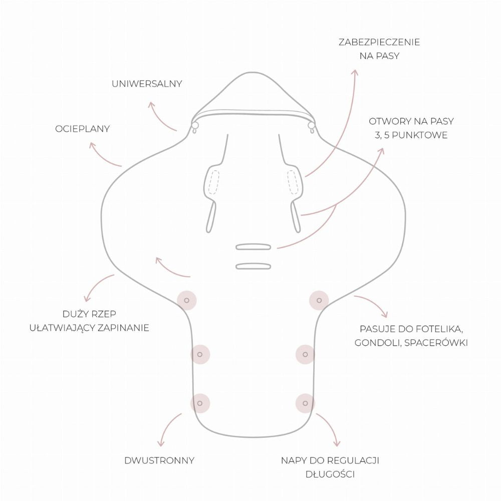 Tæppet passer til 3- og 5-punktsseler, hvilket sikrer en sikker pasform for babyer fra de første dage af livet og op til omkring 12 måneder.