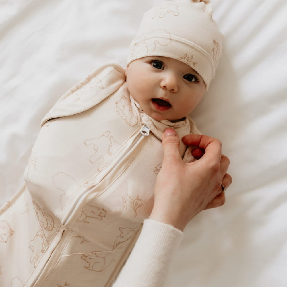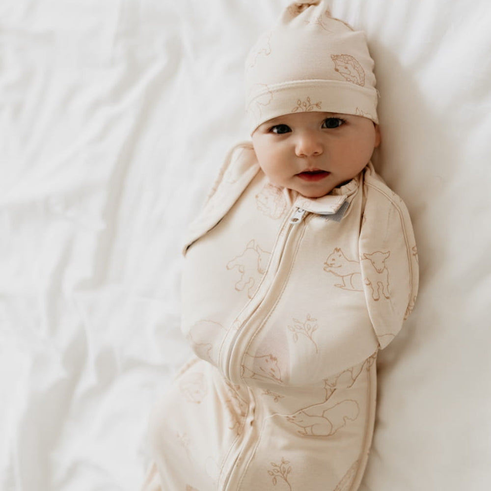 Sleepee Baby Wrap med hue First Step Vintage Animals Almond