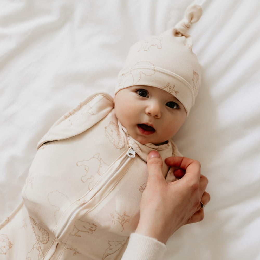 Second Step baby wrap med hue Melange fra Sleepee er et must-have for alle forældre.