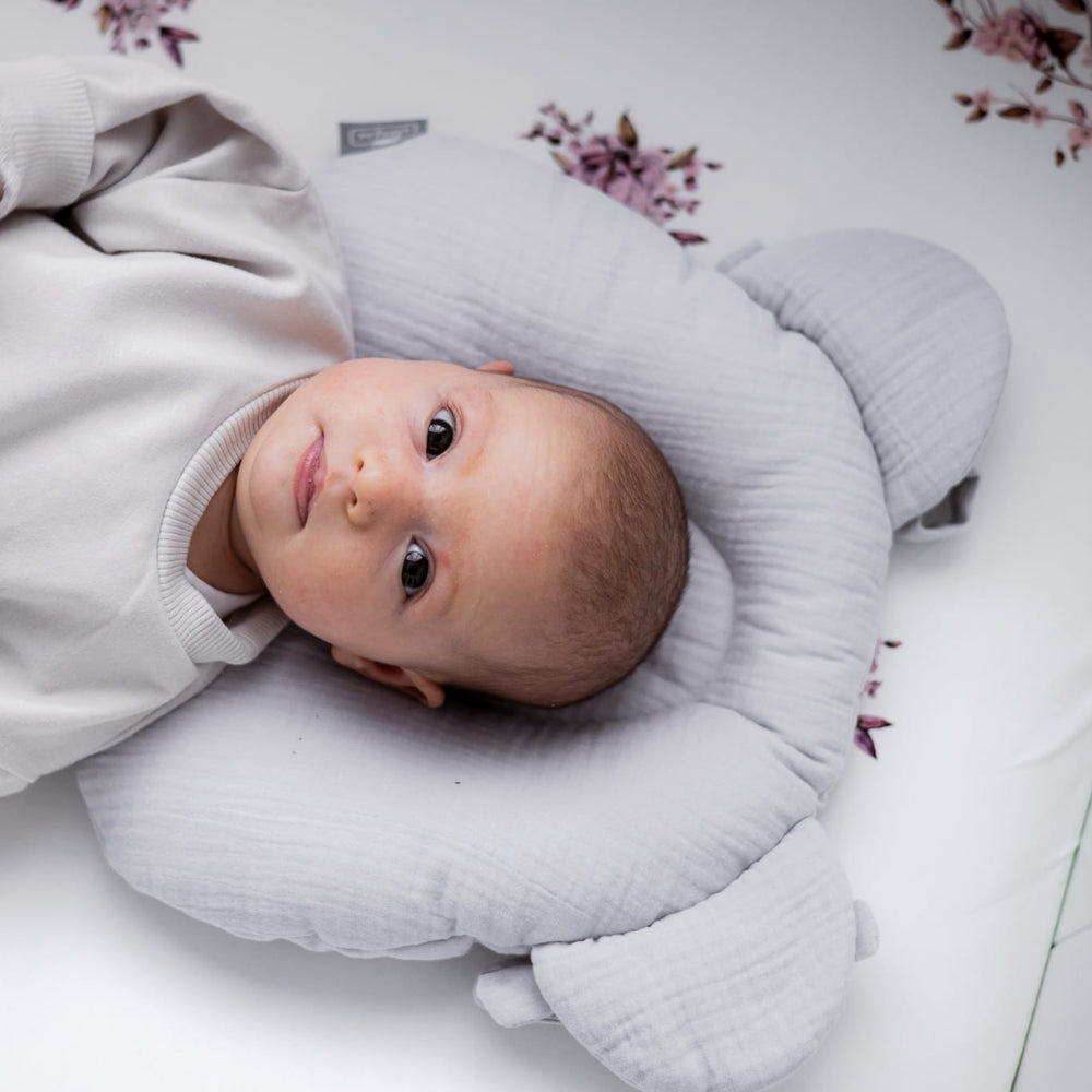 Den har en lille fordybning i midten, der sikrer, at babyens hoved hviler på de bløde sider, hvilket reducerer trykket på underlaget.