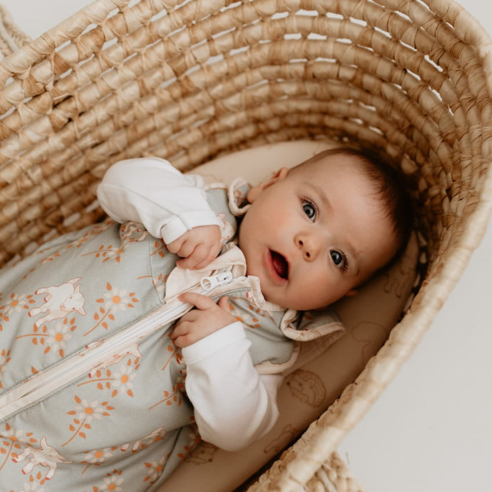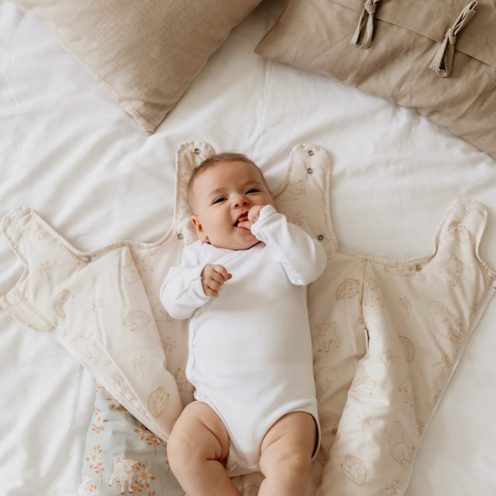 Soveposen er lavet af 100 % åndbar bomuld og sikrer en optimal temperatur, mens babyen sover, så den ikke bliver overophedet og samtidig beskyttes mod kulde.