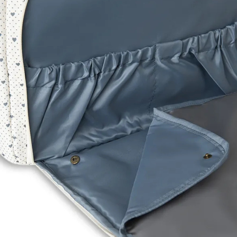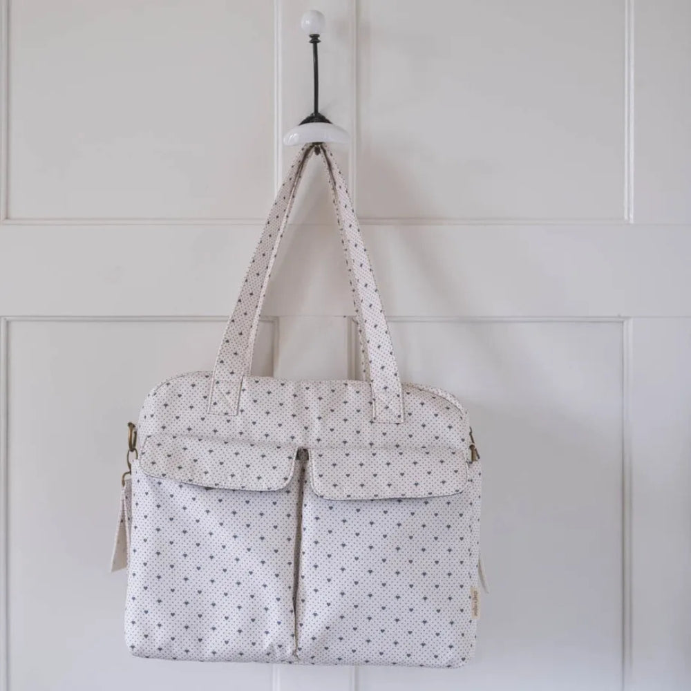 Denne taske er mere end bare en klassisk pusletaske – den er en praktisk og elegant løsning, der er designet til at rumme alt, hvad du har brug for, så din lille kan være komfortabel og glad, uanset hvor I er.