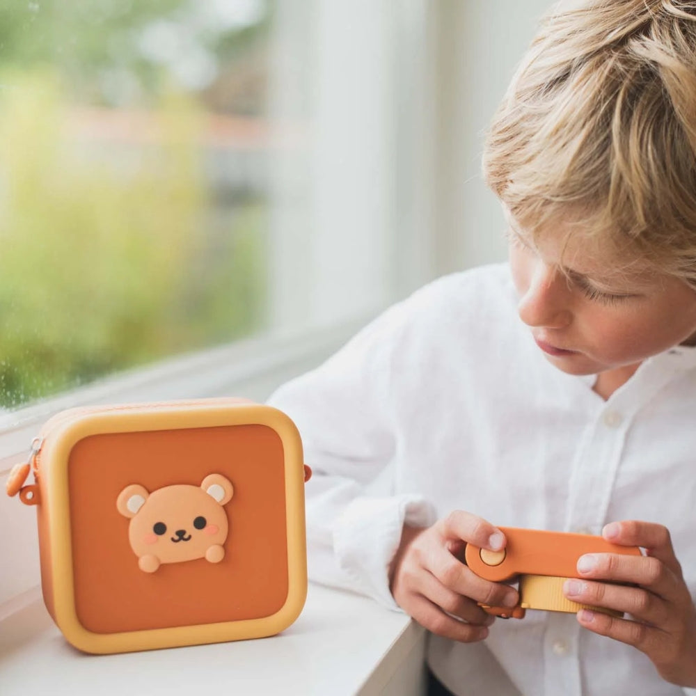 Den bjørneformede silikonetaske er ideel til børn og voksne, der ønsker at opbevare og beskytte deres Zoofamily-kameraer eller walkie-talkies med stil.