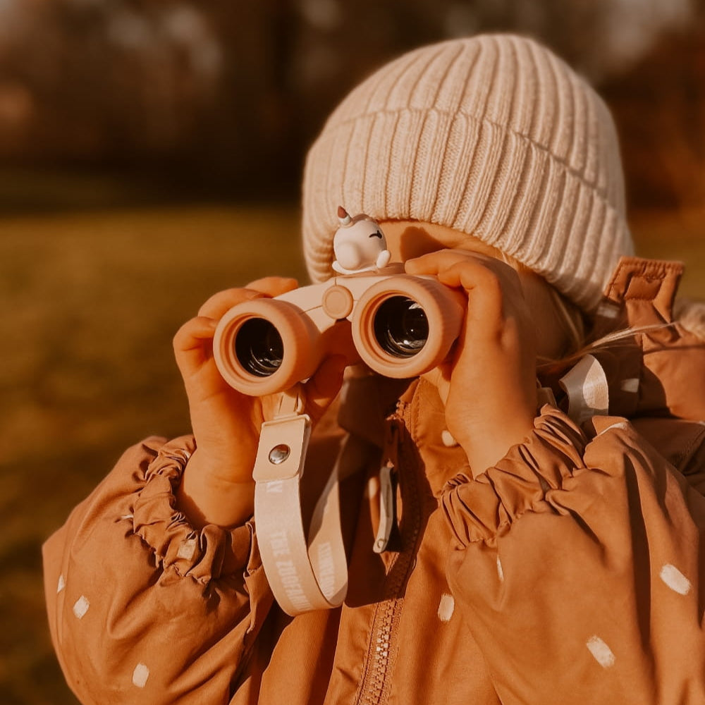 Børnekikkerten har et let design, en ergonomisk form og en behagelig nakkestrop, så den passer perfekt i små hænder.