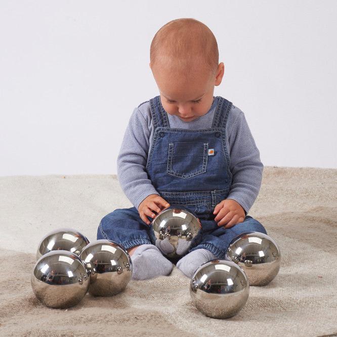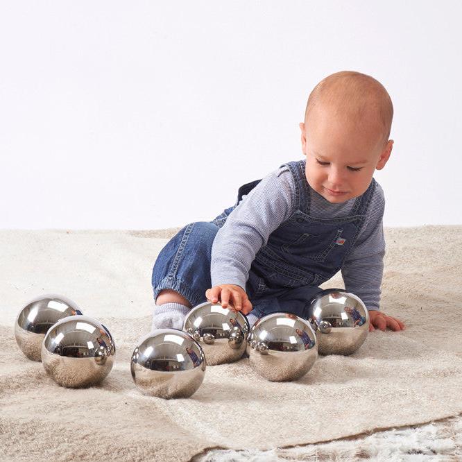 Rustfri stål sensoriske kugler fra TickiT er den perfekte gaveidé til ethvert lille barn.