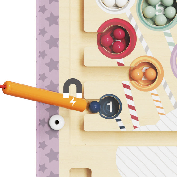 Ved hjælp af en magnetisk blyant flytter småbørn de farverige perler gennem en magisk labyrint, indtil de har arrangeret de lækre slikkepinde.