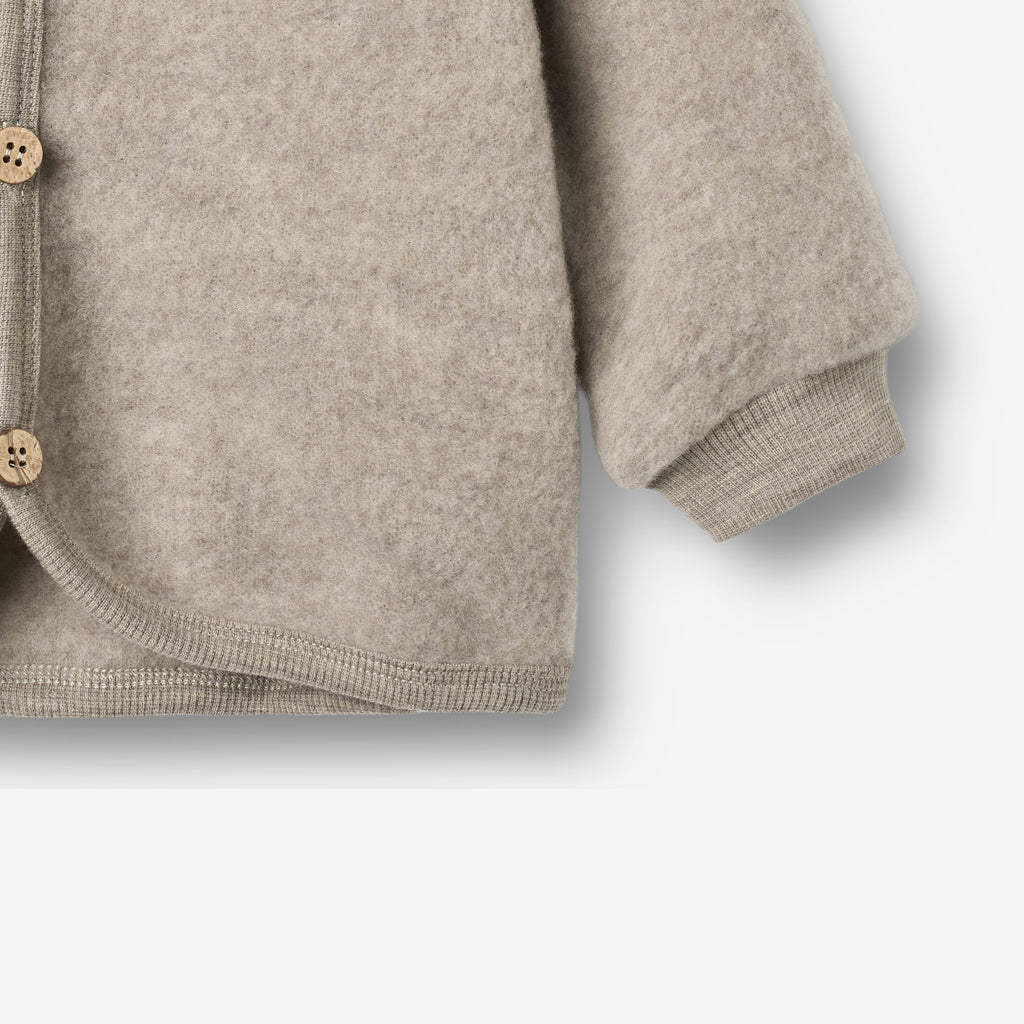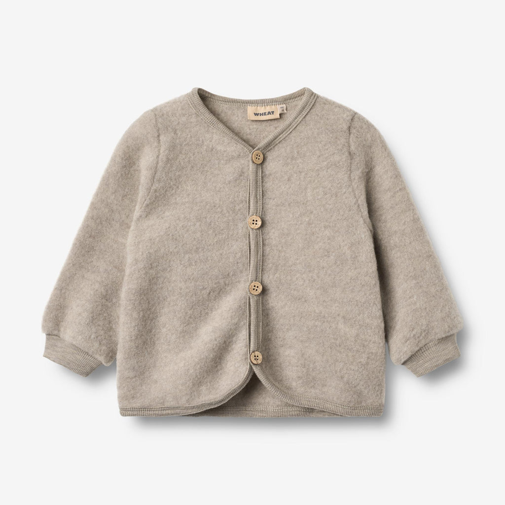 Wheat kardigan til piger i merinould Kari Khaki Melange