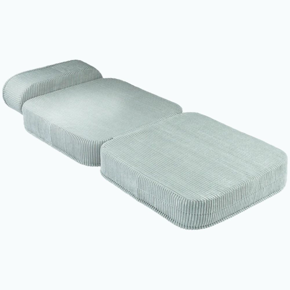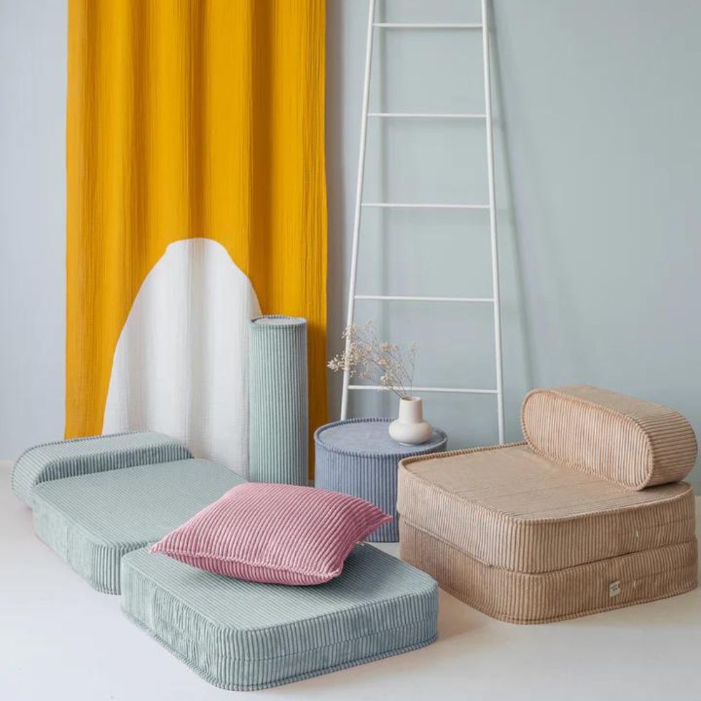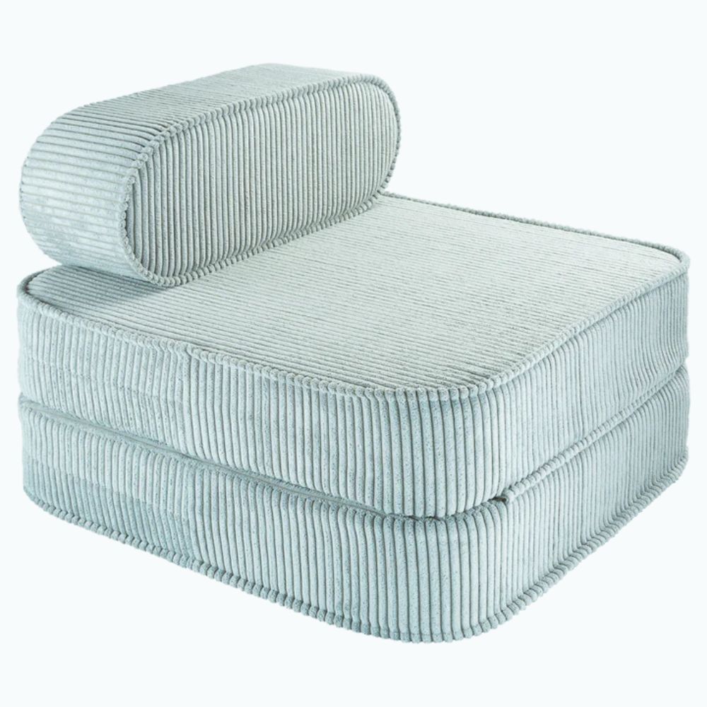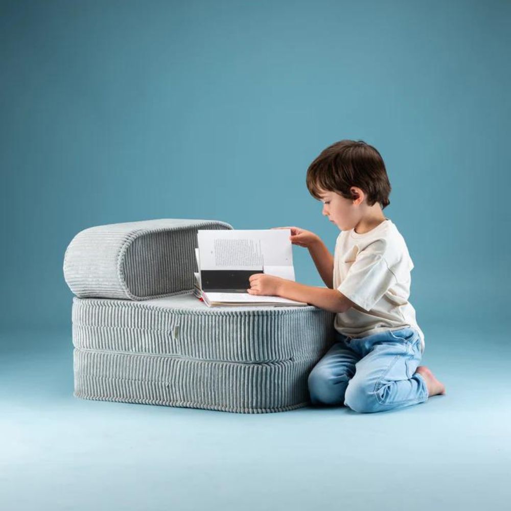 Peppermint Green Flip børnestol i fløjl fra Wigiwama er en stilfuld og praktisk tilføjelse til ethvert børneværelse.