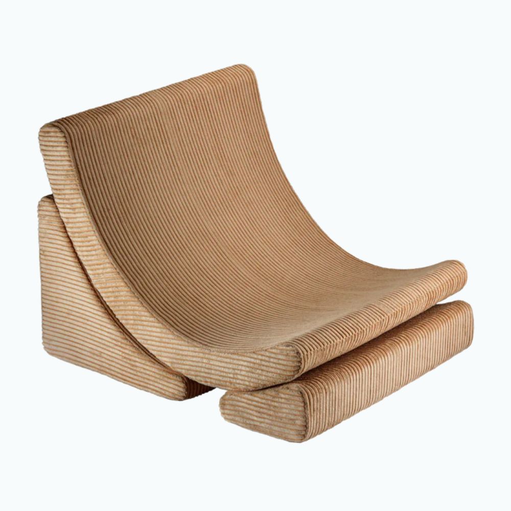 Med sine bløde, rene linjer og bløde tekstur er Toffee Moon-lænestolen et indbydende sted at krølle sig sammen med en yndlingsbog, dagdrømme eller bare slappe af.