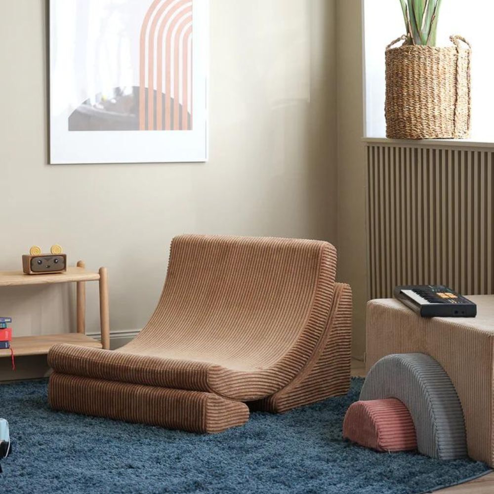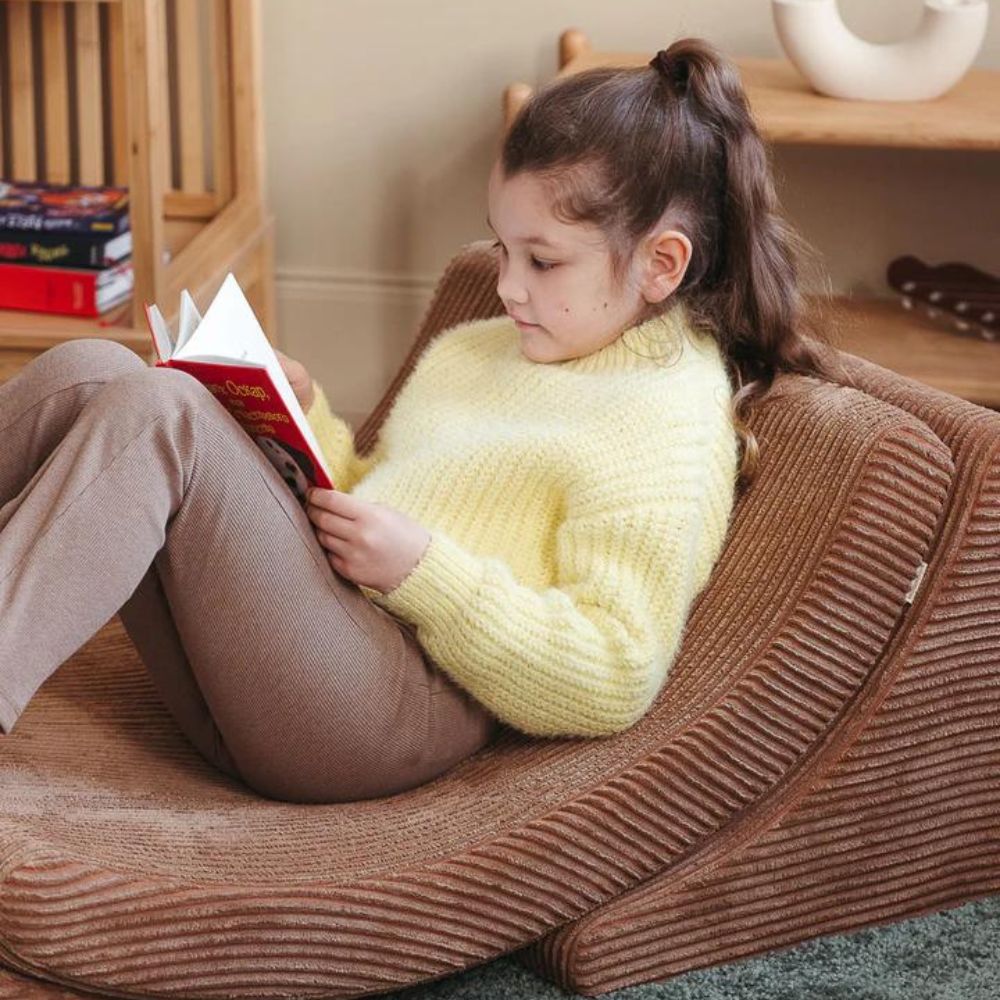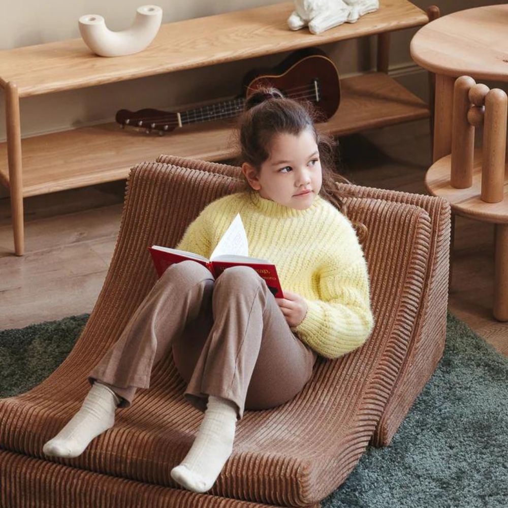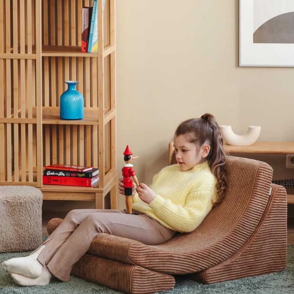Ligesom månen oplyser nattehimlen med sit blide skær, udstråler Toffee Moon-lænestolen varme og komfort og omfavner børnene i en æstetisk og hyggelig krammer.