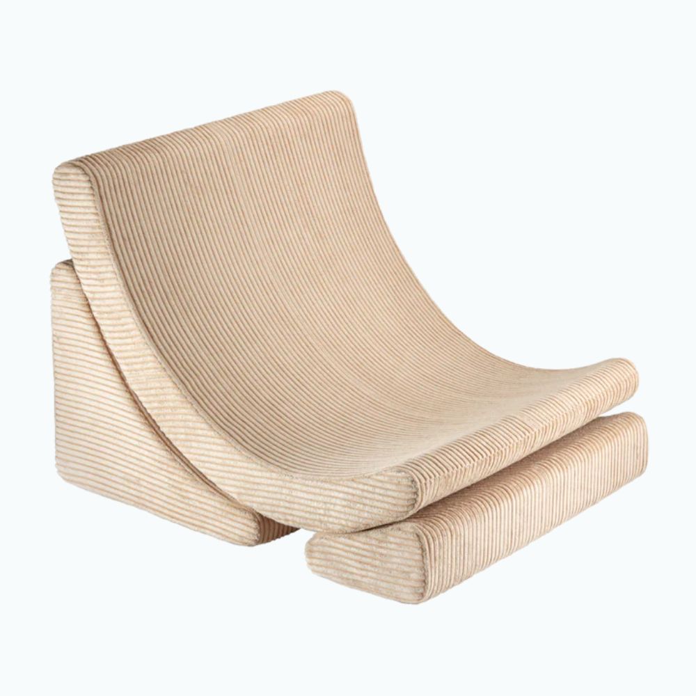 Med sine bløde, rene linjer og bløde tekstur er Brown Sugar Moon-lænestolen et indbydende sted at krølle sig sammen med en yndlingsbog, dagdrømme eller bare slappe af.