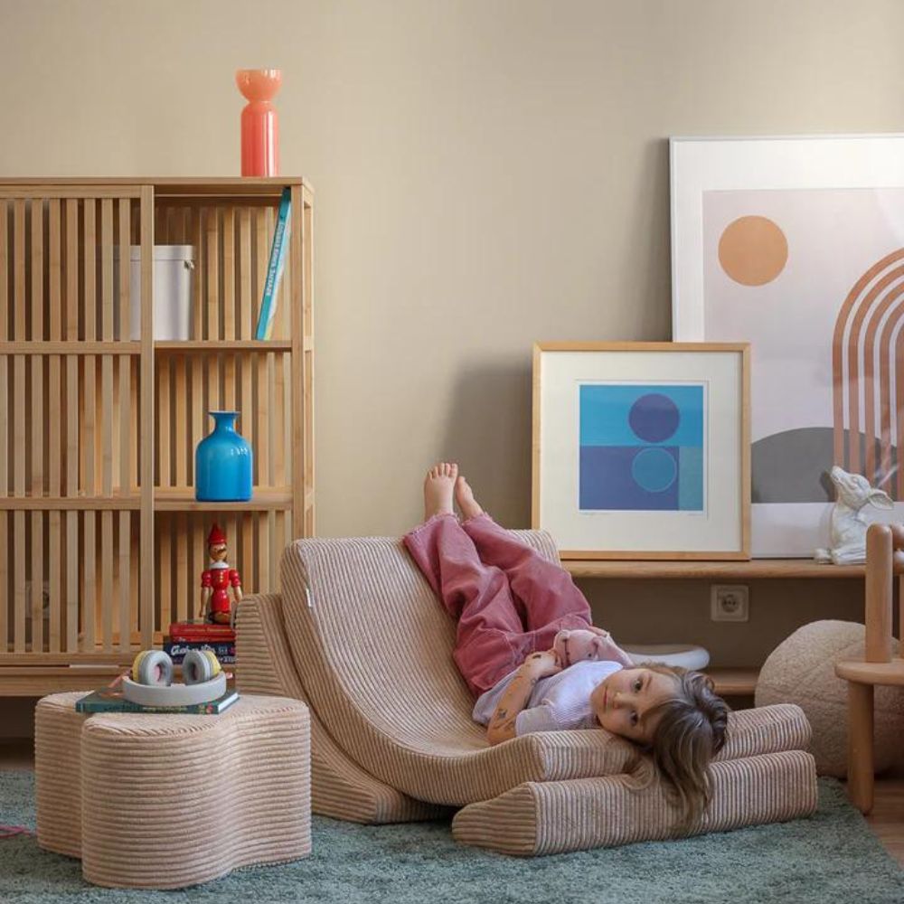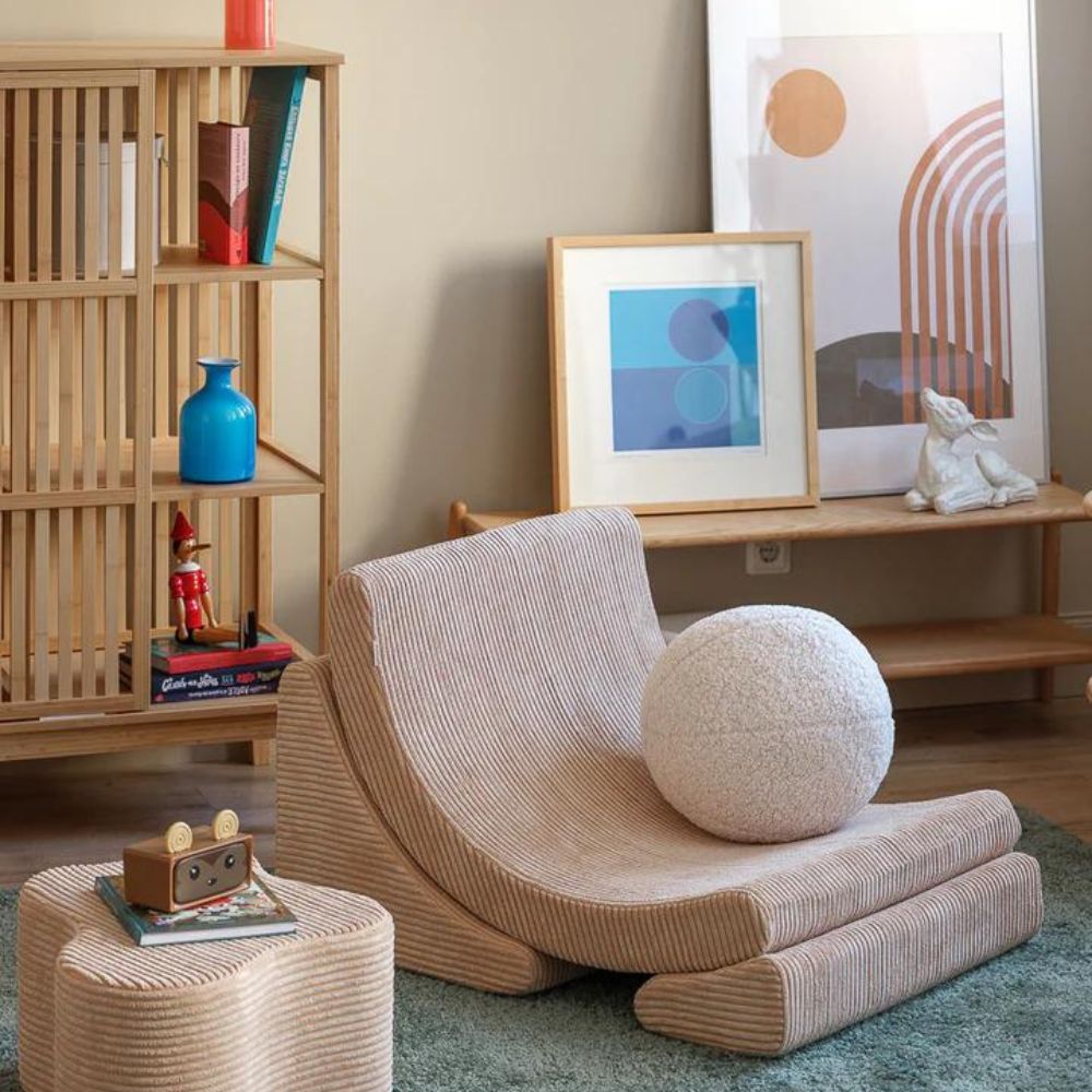 Ligesom månen oplyser nattehimlen med sit blide skær, udstråler Brown Sugar Moon-lænestolen varme og komfort og omfavner børnene i en æstetisk og hyggelig favn.