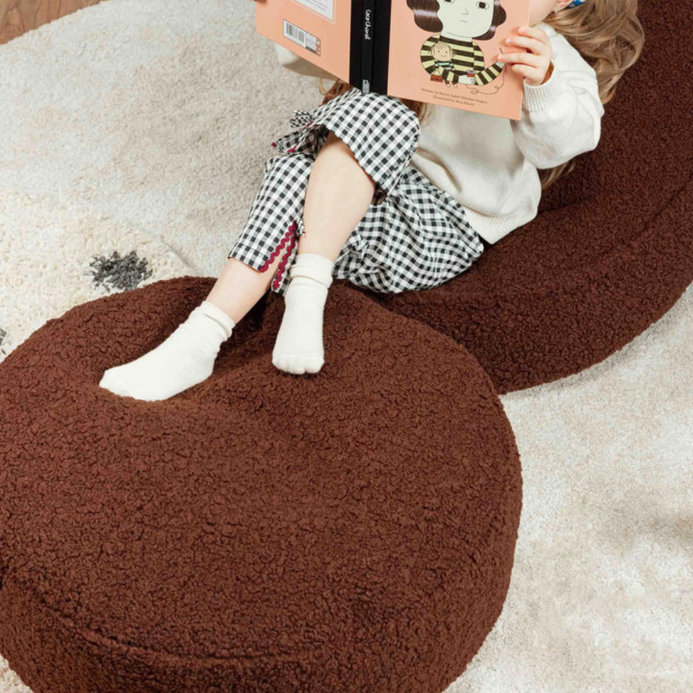 Den runde skammel fra Wigiwama er en fantastisk tilføjelse til et barns afslapningsområde - den matcher sækkestolene og skaber et hyggeligt hjørne på værelset eller i legerummet.